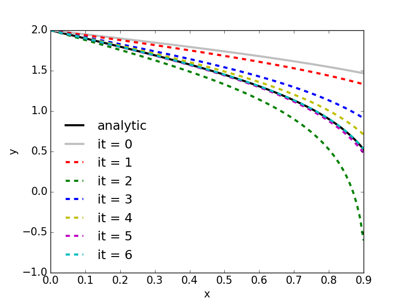 To start the iteration we need to choose \( Y^0 \) (m = 0). A straight line between the boundary values could be a reasonable starting point: